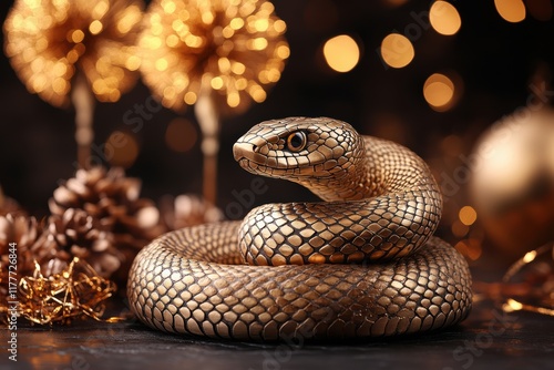 Fototapeta premium Elegant Snake Coiling in Festive Setting with Golden Accents