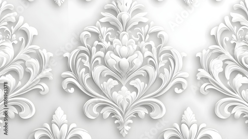 © Neungruedee, Fototapeta premium Elegant Soft Grey Damask Pattern Design in High Resolution Quality