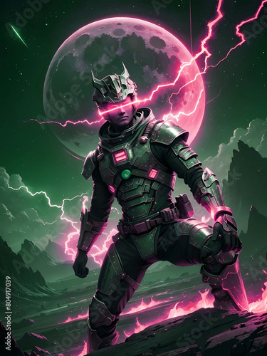 © Александр Ковалёв, Fototapeta premium Elegant space soldier character on alien planet