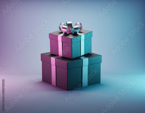 Obraz premium Elegant stacked gift boxes with soft gradient lighting
