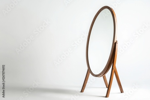 © Юля Бурмистрова, Fototapeta premium Elegant standing mirror showcasing exquisite design against a pristine white background