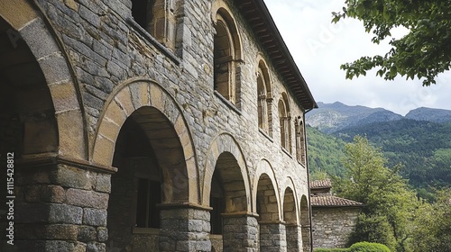 Obraz premium Elegant stone architecture surrounded by scenic mountain views.