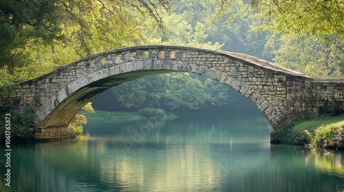 Fototapeta premium Elegant stone bridge over a tranquil body of water background