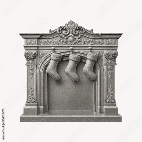 © Rawpixel.com, Naklejka premium Elegant stone fireplace with stockings.