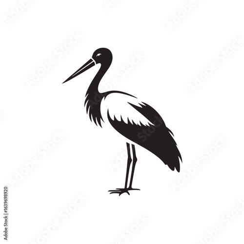 © subur, Fototapeta premium "Elegant Stork Bird Vector Silhouette Featuring Graceful Long-Legged Wading Pose, Perfect for Wildlife Art, Nature Illustrations, Birdwatching Themes, Wetland Decor, and Ornamental Graphic Design Proj