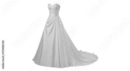 © Khadim, Obraz premium Elegant strapless wedding dress isolated PNG with Transparent Background