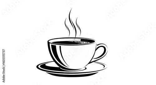 Obraz premium Elegant stylized coffee cup artwork with rising steam on a saucer isolated