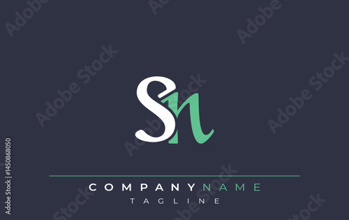 © Mahamud, Fototapeta premium Elegant Stylized SN Lettering Design. Stylish Modern Logo featuring Monogram Letters in White and Teal Shade