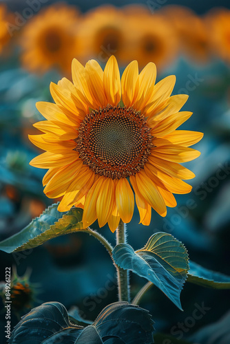 © Oleksandr, Naklejka premium Elegant summer background featuring a close-up of a single sunflower,