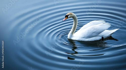 Fototapeta premium Elegant Swan Gliding on Serene Water Surface