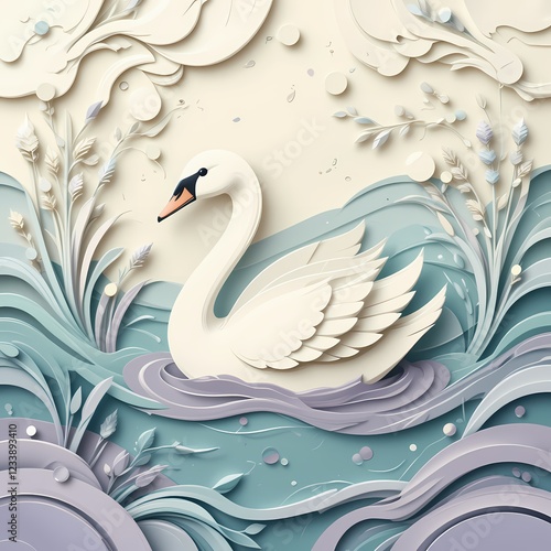 © Mishkat Uddin Rahat, Obraz premium Elegant swan paper art, serene water scene
