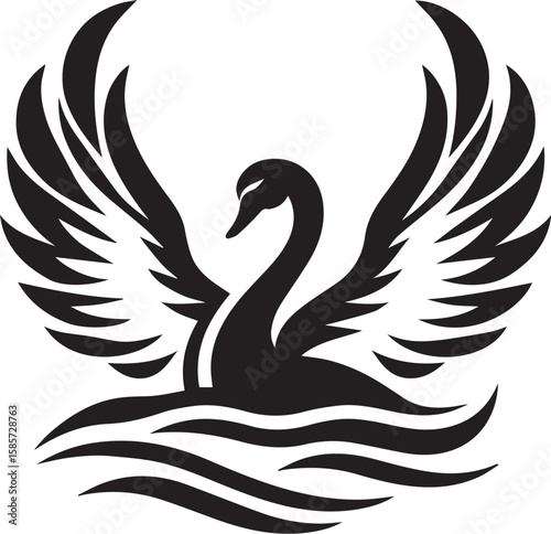 © Digital, Fototapeta premium Elegant swan with open wings vector