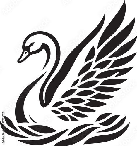 © Digital, Fototapeta premium Elegant swan with open wings vector