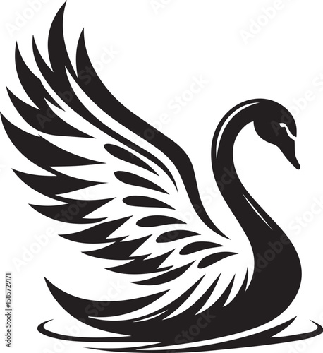 © Digital, Fototapeta premium Elegant swan with open wings vector