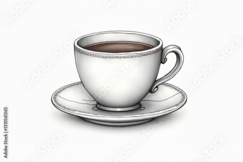 © PomPam, Obraz premium Elegant Tea Cup and Saucer Filled with Coffee Illustration