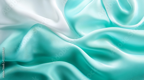 © Tahsin, Fototapeta premium Elegant Teal and White Silk Fabric Draped Texture Background Soft Aqua Mint Blue Waves Shiny Color