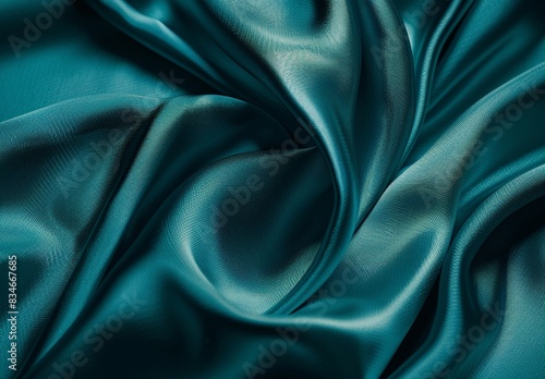 Fototapeta premium Elegant teal fabric texture with flowing folds