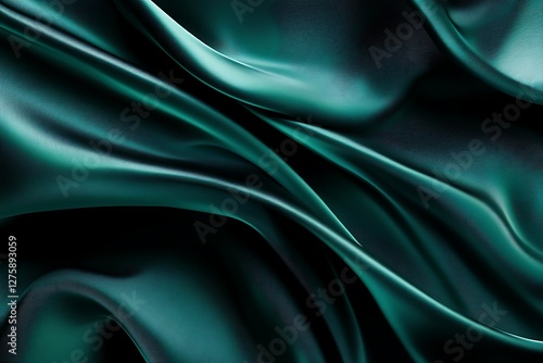 © Suryadil, Obraz premium Elegant Teal Silk Drape, Luxurious Fabric Texture