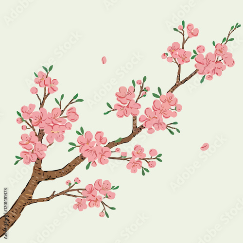 Naklejka premium Elegant Tet Peach Blossom Illustration: A Symbol of Vietnamese New Year