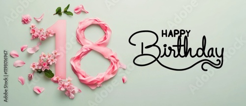 Naklejka premium Elegant 18th Birthday Celebration with Pink Flowers and Silk Ribbon
