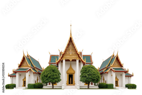 Naklejka premium Elegant Thai Temple Architecture with Traditional Design and Greenery