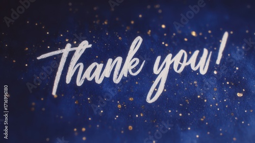 © The Stock Alchemist, Naklejka premium Elegant Thank You Message with Gold Glitter on Dark Blue Background - Grateful, Appreciation, Festive, Elegant, Holiday Card Design