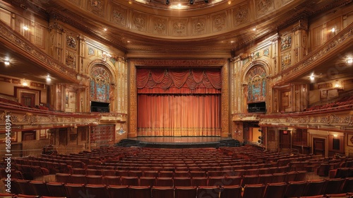 © Babb, Obraz premium Elegant theater interior showcases intricate architectural details and plush seating, capturing the anticipation of an upcoming performance at a cultural venue