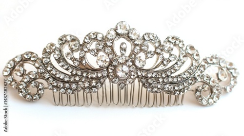 Obraz premium Elegant tiara or hair comb encrusted with rhinestones shown centered on white