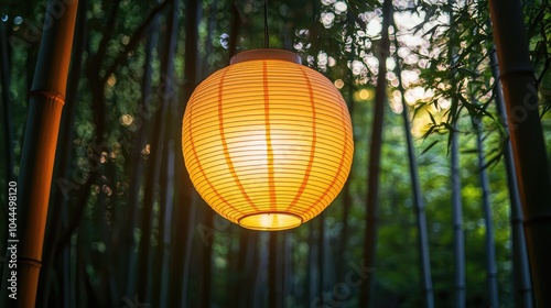 Obraz premium Elegant Traditional Japanese Paper Lantern Hanging in Forest