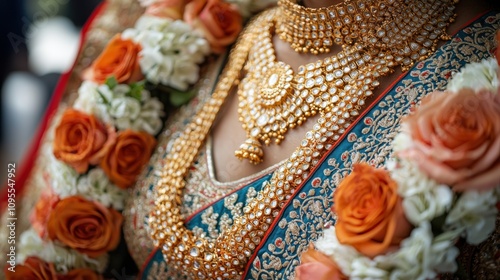 Obraz premium Elegant Traditional Jewelry Adorned with Floral Garland and Rose Accents for...