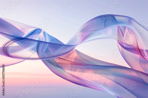 Naklejka premium Elegant translucent ribbons flowing freely in a serene sky at sunset,...
