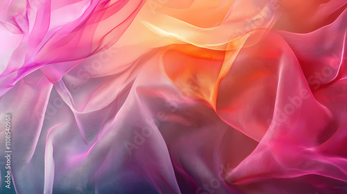 © Thiago, Fototapeta premium Elegant transparent silk background with vibrant colors in created with generative ai technology. Gossamer. Illustration
