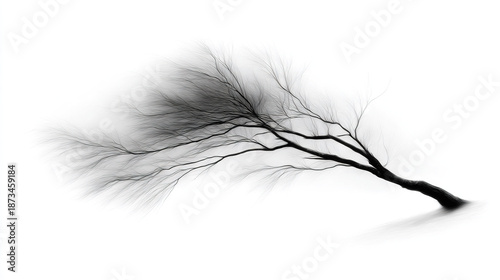 © Anna, Obraz premium Elegant Tree Branch in Motion Against a Foggy Background