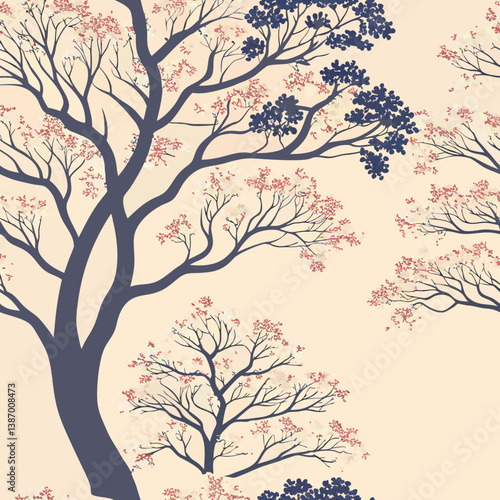 Fototapeta premium Elegant tree design featuring intricate branches and delicate flowers in soft...