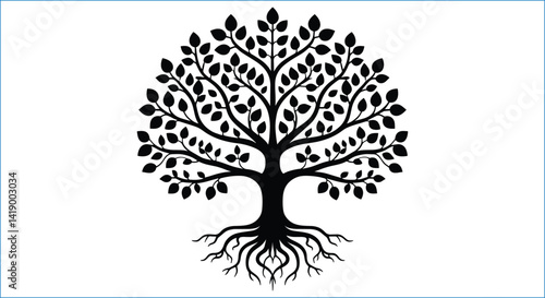 © Graphics_City, Obraz premium Elegant Tree Of Life Illustration With Branches And Roots Silhouette