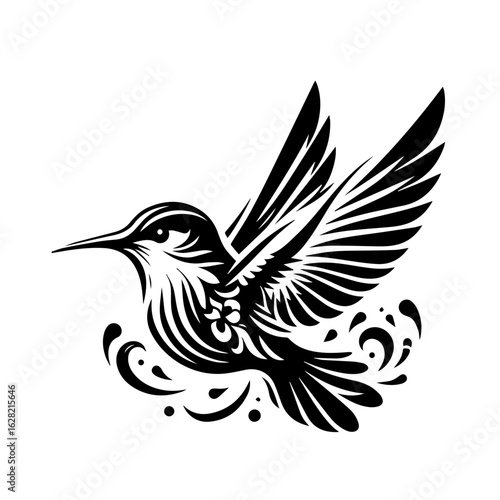 © SEULI AKTER, Obraz premium Elegant tribal style hummingbird in flight vector illustration.