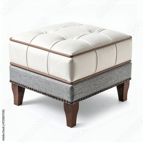 © Rana, Fototapeta premium Elegant tufted ottoman showcasing refined craftsmanship and neutral color palette white background
