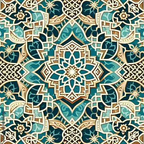 © Arslan, Fototapeta premium Elegant Turquoise Islamic Tile – High Detail Seamless Vector.