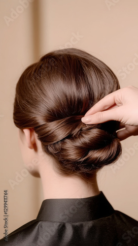 © sabyna75, Naklejka premium Elegant updo hairstyle styled by professional for sophisticated occasions
