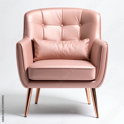 © Rana, Naklejka premium Elegant upholstered armchair in a soft blush tone with sleek metal legs, comfort style white background