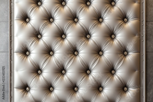 © Joesunt, Naklejka premium Elegant Upholstery: A luxurious tufted headboard in soft neutral tones, showcasing exquisite details. Evokes the elegance and comfort.