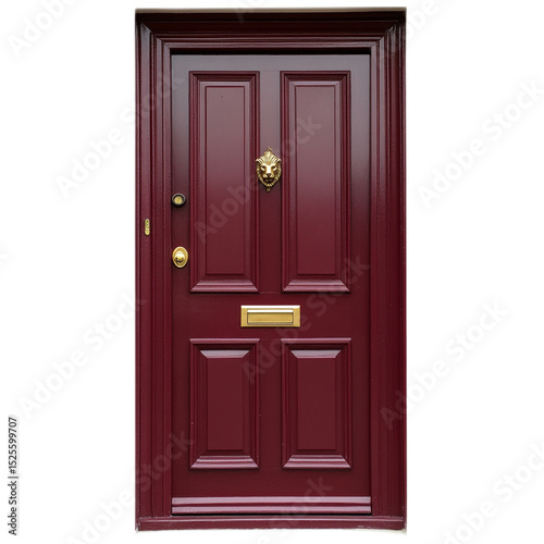 © Bitterblack, Fototapeta premium Elegant Victorian Front Door in Deep Burgundy Color with Gold Details, Perfect for Historic House or Classic Architecture Theme