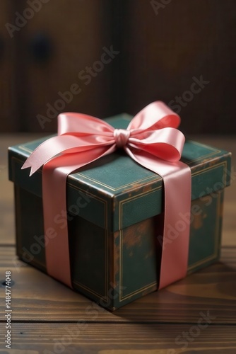 Fototapeta premium Elegant vintage box, satin bow, aged wood grain, wood grain, decor, texture