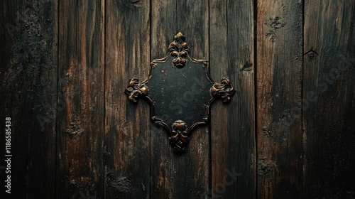 Fototapeta premium Elegant vintage wooden background with ornate frame and textured dark wood for rustic and classic design themes.