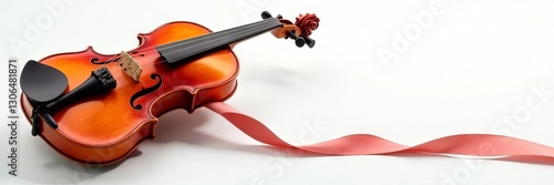 Fototapeta premium Elegant violin and bow, pristine white backdrop, bowed string instrument, orchestra
