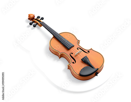 © efendiahd, Obraz premium Elegant Violin 3D Render: A Classical String Instrument on White Background