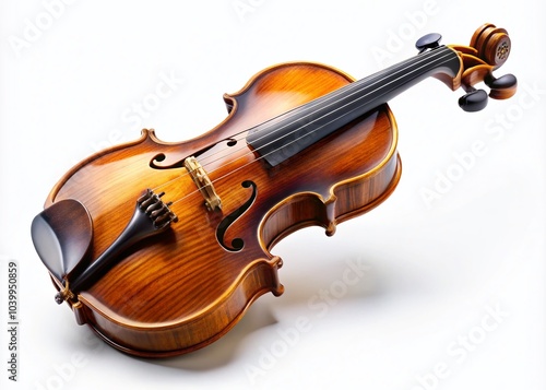 Fototapeta premium Elegant Violin on White Background - Classic Musical Instrument for Timeless...