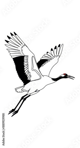 © Ariestia, Fototapeta premium Elegant wading bird in flight depicted with bold black and white outline illustration