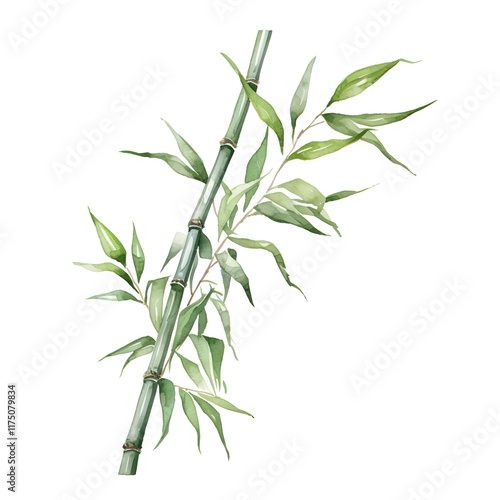 Fototapeta premium Elegant Watercolor Bamboo Arrangement with Green Tones on White