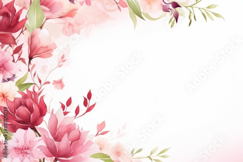 © nsit0108, Naklejka premium Elegant watercolor floral background framing an empty space, perfect for invitations, cards, or any design project needing a touch of nature
